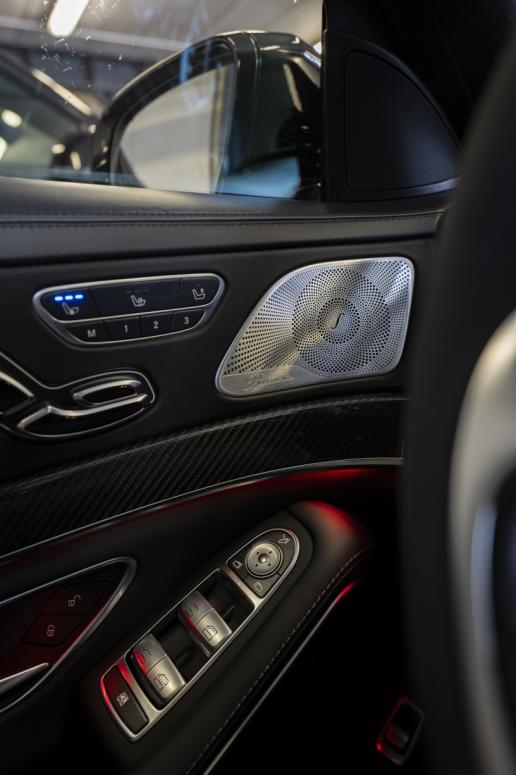 - De S63 is quasi full option uitgerust met Comand Online Navigatie, Panoramaschuifdak, 360 Graden Camera, Soft-Close deuren, Burmester Sound System, Adaptieve Cruisecontrol, Zetelverwarming, Zetelkoeling, Massage zetels, Keyless-Go, Lane Assist, Dodehoekassistent, Magic Body Control luchtvering, ILS Led koplampen, Head-Up Display, AMG Performance Stuur, Alcantara Dakhemel, Exclusive Nappa Leder, Night Vision, Memory zetels achteraan, Chauffeurspakket en nog veel meer.